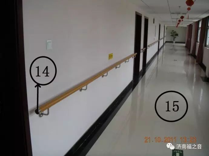 14. 走廊要安装扶手,同时扶手末端要做入墙处理(见下图),免得因为末端不处理钩住老人衣物或手袋